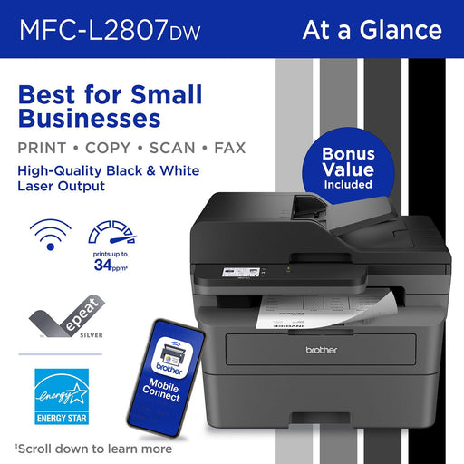 View full detailsCondition Note: Product is Brand New Description: FunctionalityEnhance productivity at work or home with the MFC-L2807DW Wireless Compact Monochro...