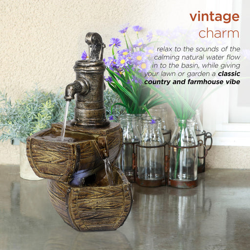 View full detailsCondition Note: Product is Brand New Description: Alpine Corporation WIN826 Indoor Tabletop 2-Tiered Vintage Water Pump Retro Barrel Fountain with...