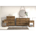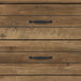 Knotty Oak finish with black metal drawer handles