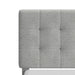 This low-profile king bed features a headboard with tasteful square tufting that creates a minimal luxe effect. The absence of buttons on the tufting lends an intriguing, modern quality to this otherwise casual piece. Elegant in its simplicity, this adult bed is fully upholstered in a soft light gray for a uniform look, and the tapered legs are finished in a contrasting black. This contemporary platform bed boasts a distinctively chic adjustable headboard with three height options to fit your preferred mattress height. A box spring isn’t required. Mattress required; not included. Assembly required.