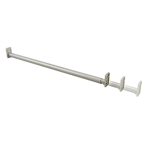 HANGING CLOSET ROD: - Sturdy closet rod for small or large closet spaces for hanging shirts, pants, dresses, skirts, jackets & more - Adjustable length: Expandable hang rod adjusts from 30 – 48 inches; Please note, ¼ in. will be needed on each side of the rod for the included brackets during installation - Sturdy design: Strong teardrop shape design provides extra holding strength and allows hangers to slide easily - Wall mount or add on: All hardware included for mount installing to wall to wall or to SuiteSymphony tower or base units; Can be cut to fit your space if needed - Satin nickel finish: Trendy, neutral satin nickel finish to fit your style & décor; Material: Powder coated steel