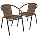 Complement your terrace and patio with these beautiful rattan chairs to surround a patio table or to seat waiting guests in the lobby. Versatile inside and outside the restaurant these lightweight stack chairs are a practical choice for any business. The full back with integrated arms provides comfort to customers. When used indoors the metal chairs have floor glides to protect your flooring and stack up to 23 high to clean floors and to store. Get cozy around the fireplace in winter months and place near your pool when it's nice outside. The all-weather frame is designed for use throughout the year, for longevity, care should be taken to protect from long periods of wet weather. Pair these metal dining chairs with a glass or metal patio table to complete your outdoor dining setting.