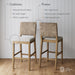 The Beacon bar height chair will surely make your bar area cozy and inviting! The seat is wrapped in a soft, textured cream boucle fabric, while the backrest is crafted from natural woven seagrass - the perfect combination for the ultimate boho vibe your bar or kitchen island needs. This 29 inch bar height stool is unique and charming, but it's not all that. The solid wood frame gives it the stability and function of a durable bar stool that will last for years. The Beacon upholstered bar stool with back is your perfect companion for a quick bite, coffee chat with family, or just a quiet moment with a book. Nathan James is the furniture company built for this generation. You don't need to spend a fortune to get quality design-first furniture, and when we say easy assembly, we mean it. Our guarantee is our word. Your purchase is backed by a 100% money-back guarantee. If you have any quality issues, contact us, and we will send you a replacement immediately—no questions asked. This product is not recommended for commercial use. Materials: - Natural Woven Seagrass - Boucle Upholstery Fabric - Rubberwood - Plywood - Foam Seat Assembly Must-Haves: - Packaging carton as working surface Weight Limit: - 300 lbs