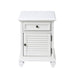 The modern farmhouse design of the functional Charlestown Storage End Table, fits comfortably in casual or cottage decors. The soft white finish adds to the cottage feel with one drawer for storing remotes or other items and a louvered door cabinet for storage. The rear top of the table lifts for easy access to the hidden power strip with USB charging stations for your devices. Also available in this collection are the matching lift-top cocktail table and end table (sold separately). Your purchase includes one storage end table.