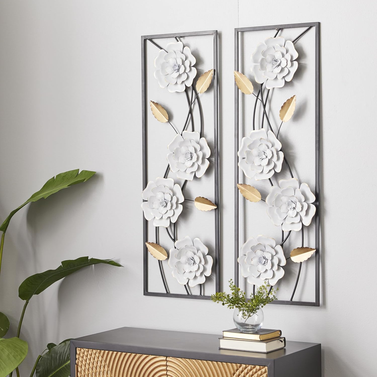 Deco 79 Metal Floral Home Wall Decor Dimensional Floating Wall Sculpture with Black and Gold Accents, Set of 2 Wall Art 12" W, 36" H, White & Gray - open_box