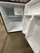Enjoy the convenience of having your favorite chilled food or drinks whenever you want with the Galanz 2.7 Cu ft Single Door Mini Fridge in Black. This is an ideal size for the dorm room, exercise room, office, garage, game room or any other living space. This Galanz refrigerator features a half-width freezer compartment, and it has excellent organizational features such as 2 coated wire slide-out shelves, 2 leveling front legs and storage for 2-Liter bottles. The convenient reversible door allows the refrigerator to open from either the left or the right side to use where ever you would like to place it. It offers a mechanical adjustable thermostat control for quick and simple temperature adjustments. It consumes less power, is energy efficient and Estar certified. Condition: New, Width = 19.13"