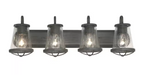 The Georgina family of light fixtures adds an industrial touch to your interior decor. With its sleek weathered iron finish and clear seeded glass shades, the Georgina vanity light will light up the room and provide years of enjoyment. This wall-mounted light is perfect for bathrooms, bedrooms, and above mirrors in other areas of your home. Georgina bath vanity lights are easy to install with included instructions and hardware, and should be hardwired to an in-wall 120V power source. This vanity fixture requires (4) E26 60W max incandescent bulbs, or the LED equivalent, which need to be purchased separately. Be sure to check out other fixtures in the Georgina collection on this site.