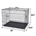 HomGarden 36'' Dog Crate provide a safe and secure environment for your dog through every stage of life. It boasts sturdy steel wire construction for durability, rust-resistant black coating makes it smooth, corrosion & fade resistant. Essential visibility, proper ventilation, large door openings, and rounded corner edges, give your dog a place to feel secure and comfortable. Includes a washable, removable tray for easy cleaning. No assembly required, easily folds flat, perfect for travel, and camping, and even training during the early stages of companionship.