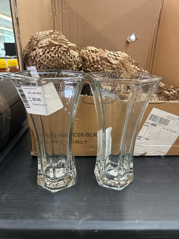 Libbey Clear Glass 9" Paneled Rose Floral Vase - new