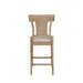 This Counter Stool is textured with a brown finish that is completed with a hand applied washed finish, to give it a rustic and vintage appeal. The eye-catching back draws attention with its swooping sides, straight lined top rail and hand woven rattan center detail. The easy to maintain seat is upholstered in 100% polyester fabric that mimics the look of a beige linen. A solid wood construction and footrails provide comfort and stability. The 26" seat height is perfect for any counter with heights of 35" to 39".