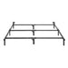 Securely support your box spring and mattress using the Mainstays Adjustable Metal Bed Frame in Black. It's adjustable to fit a twin, full, or queen mattress and box spring. Made from strong steel, it features welded legs for supreme support. With an integrated middle support beam and built-in headboard brackets, the Mainstays Adjustable Metal Bed Frame is the perfect piece to attach your existing headboard to. It's supported on nine sturdy bed feet that can hold up to 1200 pounds. Designed with feet caps to protect your flooring from scratches or nicks, this bed frame also features slightly recessed feet to reduce the chance of stubbing your toe! Ultra-easy to assemble at home with no tools required.