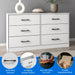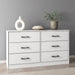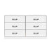 This six-drawer dresser is as simple to put together as it is sleek. Featuring a design that allows for quick and easy assembly by anyone, this piece gives you an elevated look without the hard work. Grooved Wood Compositeen panels are designed to stay in place so you can effortlessly snap them together and then move on with your day. With clean lines and a timeless silhouette, this adult dresser boasts generously sized drawer pulls, and a lamination process ensures a consistent white finish throughout. Wide and substantial, this dresser features six spacious drawers that slide smoothly on a metal glide system. Add understated elegance to your bedroom with this casual transitional piece. Assembly required.