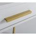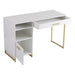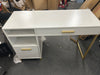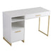 A stylish contemporary desk in a reclaimed white finish accented by matte gold metal legs. Constructed of engineered wood and metal legs to create a durable and stylish accent for almost any room. Ideal for use with laptops and small desktops. A clear and well-organized installation guide is helpful even if you are new to installing a desk.