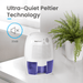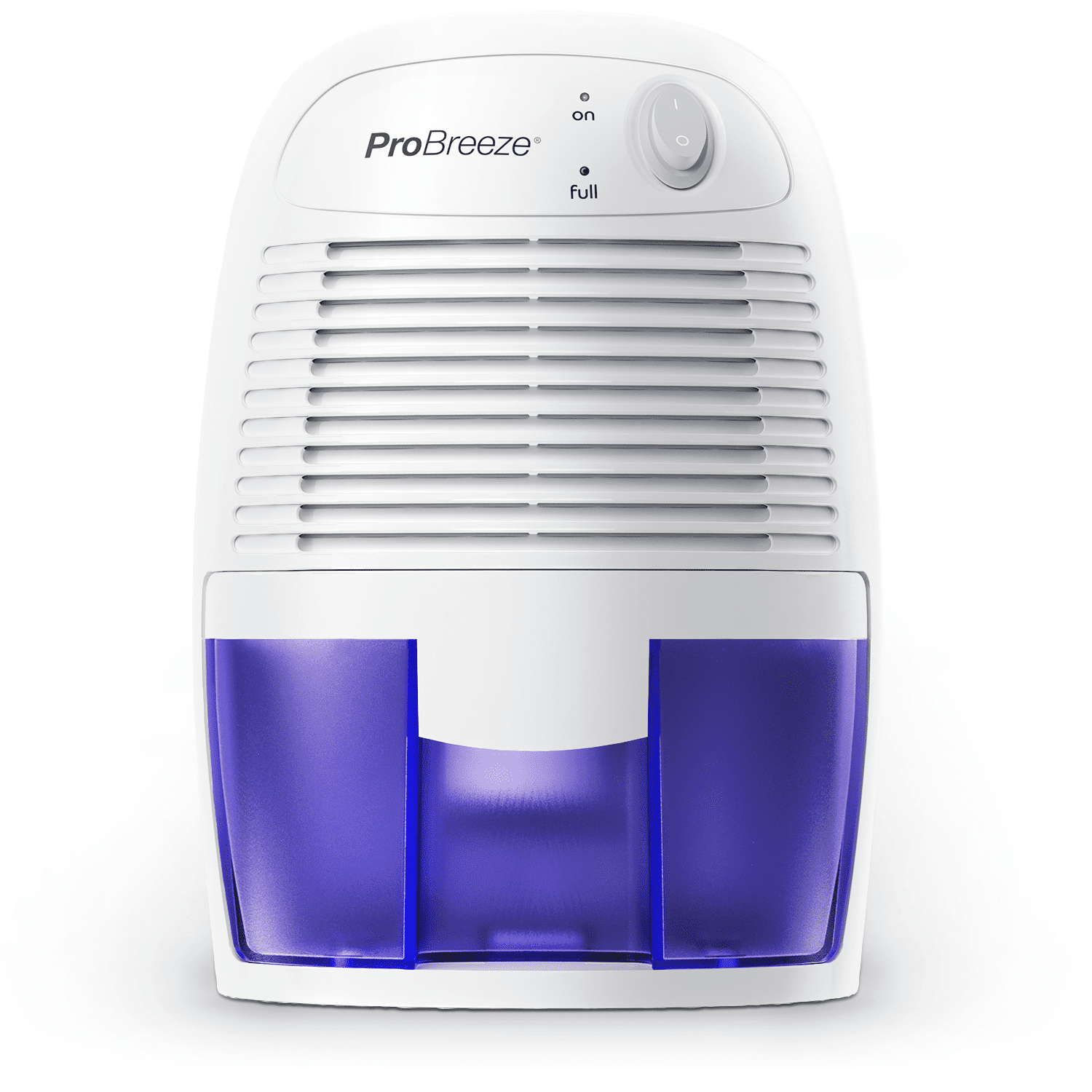 The Pro Breeze 215 square feet Mini Dehumidifier with low energy consumption & whisper quiet operation. This compact and portable Pro Breeze mini dehumidifier efficiently reduces humidity in small rooms up to 215 square feet. It extracts up to 8 fluid ounces of water per day, collected in a large 17 fluid ounce water tank. It is perfect for use in small spaces such as your kitchen, garage, basement, RV, trailer, wardrobe, and boat, and - with its lightweight design - it can be easily transported. Auto Shut-Off: When full, the dehumidifier will automatically shut off and the LED light will turn on, indicating the water tank needs draining. Simply empty the water tank and place it back into the dehumidifier. Lowers Humidity: Capable of removing up to 8 fluid ounces of water per day with a 17 fluid ounce water tank capacity. Perfect for high humidity in your home.