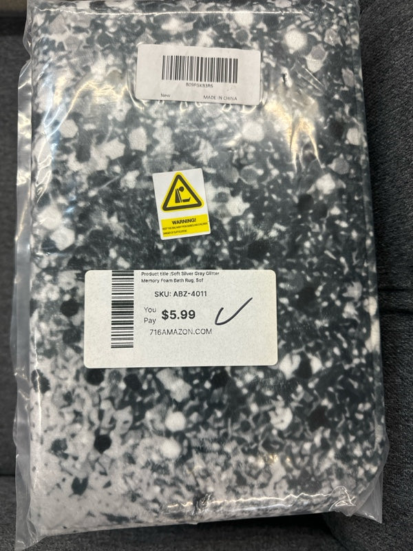 Soft Silver Gray Glitter Memory Foam Bath Rug, Soft Absorbent Floor Mats, Velvet Bathroom Mat, Machine Washable, Quick Dry Rugs, Carpet for Bathroom Shower 15.7" X 23.5" - new