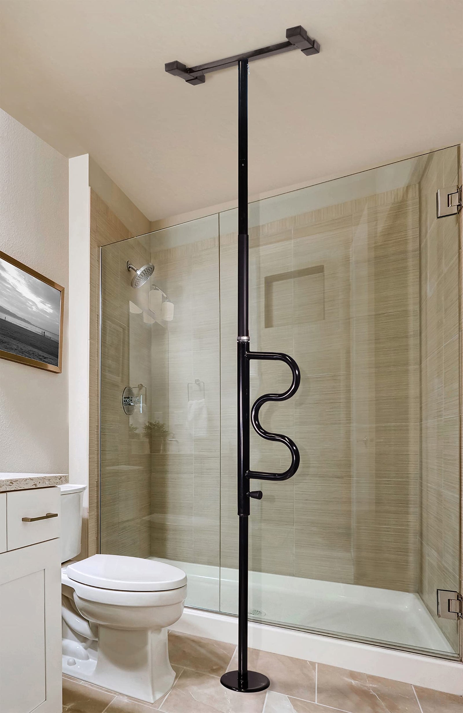 Stander Wonder Pole, Security Pole and Curve Grab Bar, Tension Mounted Floor to Ceiling Transfer Pole for Seniors, Elderly Adults, Bathroom Safety Assist and Stability Rail, Black - new