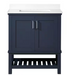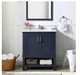 Instantly refresh your small bathroom or powder room with the stylish space-saving Tupelo 30 in. wide vanity by Home Decorators Collection. A stunning midnight blue contemporary finish and sophisticated chrome hardware pair with a refined white engineered stone slab countertop with matching backsplash and undermount ceramic sink. The double door cabinet with an adjustable interior shelf tucks away plenty of storage, while the farmhouse chic bottom open shelf is ideal for baskets, accessories and display.