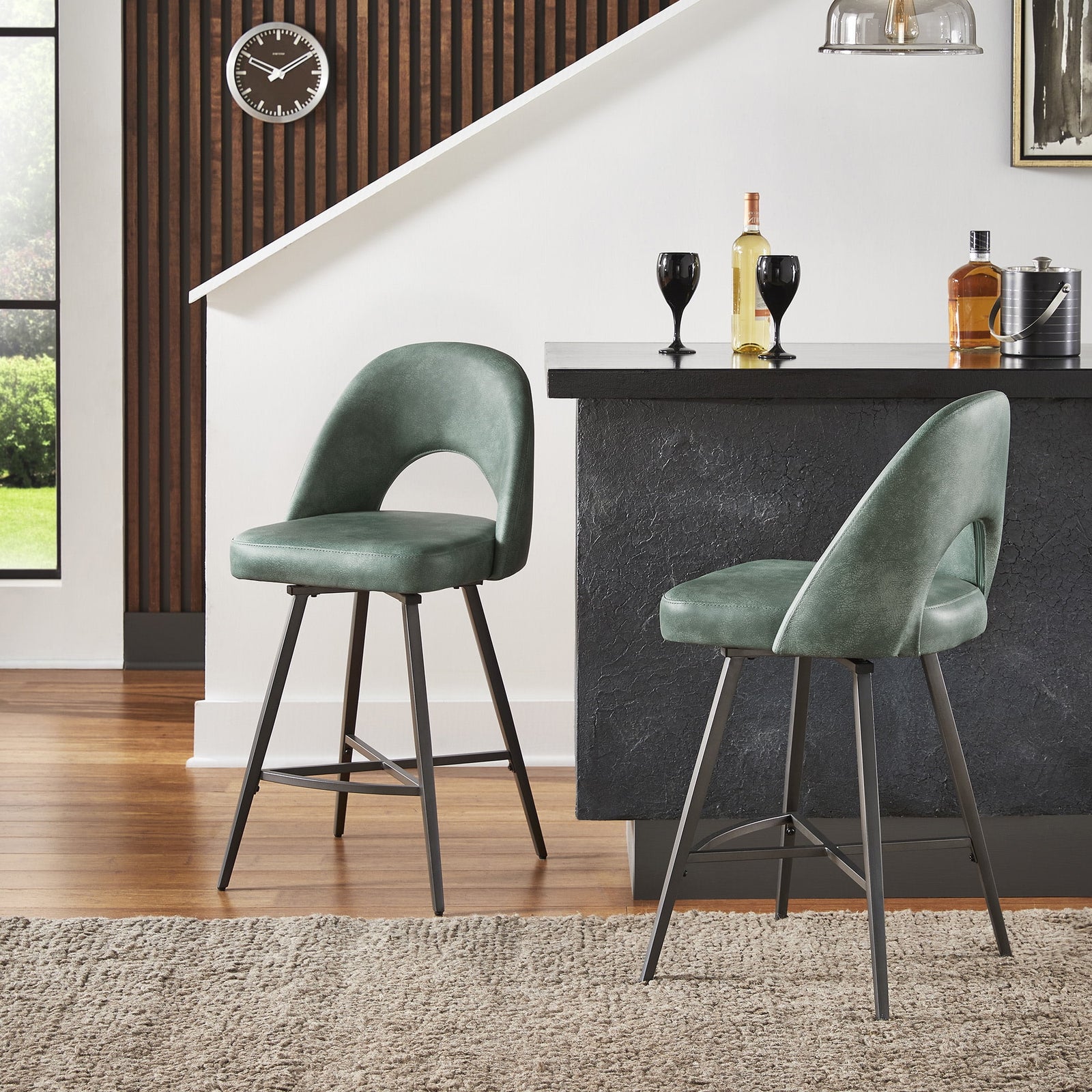 Weston Home Krista 24" Metal Swivel Mid Back Counter Stools, Set of 2, Teal - open_box