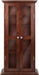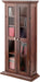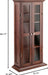 Elegantly styled with traditional profiled trim and deep stain. 5 adjustable shelves offer storage for up to 135 DVDs, 205 CDs or 75 videocassettes. With glass door inserts and satin nickel-finish metal hardware. Warm walnut finish.